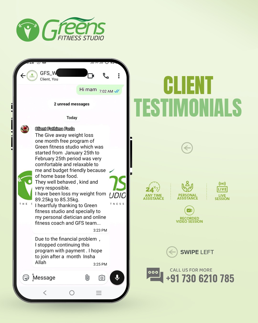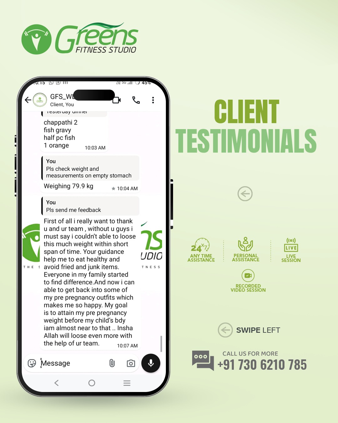In the heart of Perinthalmanna, Greens Fitness Solution has long been an emblem of excellence in conventional fitness training. We've stepped into the digital sphere with Greens Fitness Studio, an online training program that delivers the essence of fitness straight to your doorstep, drawing on our years of rich expertise. Our team, comprising seasoned fitness trainers and dedicated dieticians, boasts over a decade of expertise in the domain. We're not just trainers; we're alongside you in the journey to a healthier lifestyle.